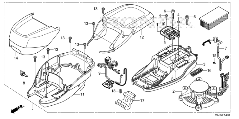 Repère 14 : 36017-VAC-E01 COUVERCLE DE BATTERIE HONDA