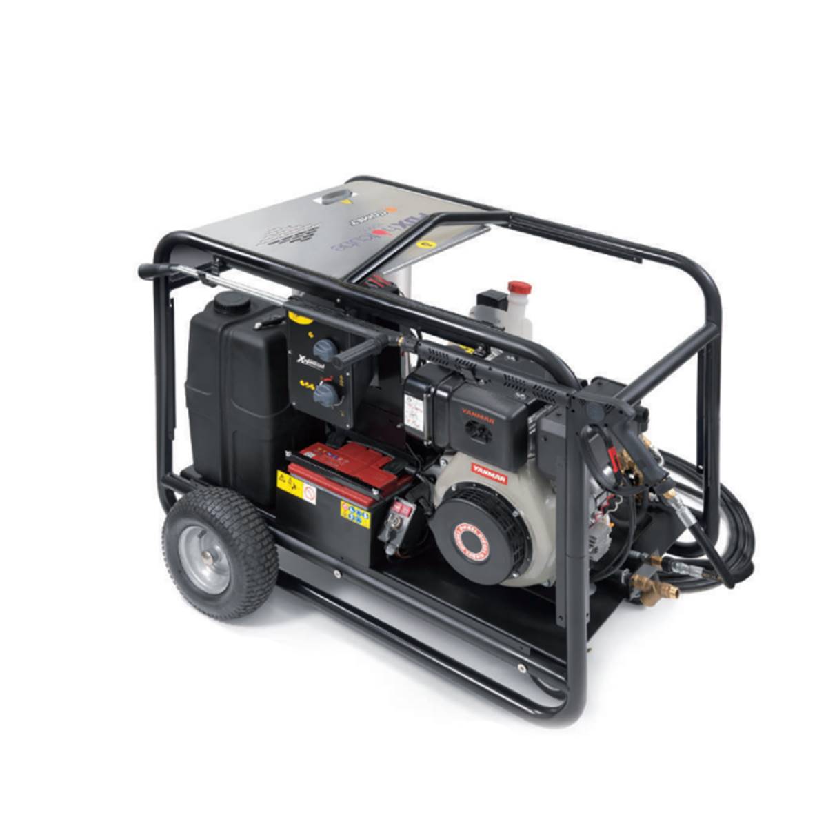 Référence constructeur : 90580502Modèle : FDX HOT CUBE 16/200B Honda GX390Pompe : FW2Pression maximum : 200 Bar 20 MPa Débit maximum : 960 l/h Moteur : Honda GX390 (13 HP) Poids : 200 KgDimensions : Longueur : 120 cmLargeur : 93 cmHauteur : 108 cmEquipement standard : - Pistolet GH 401 avec raccord tournant (2 joints toriques) - Lance double coudée, sans buse - Buse détergent pour lance double, 1/4” MEG, laiton Kit contrôle flamme - Buse HP 25° 1/4” MEG - Flexible haute pression 10m - Kit décélérateur
