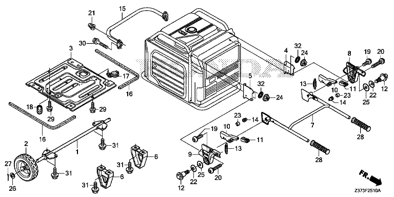 Retrouvez toutes les pièces détachées OEM Honda pour votre groupe électrogène EU70iS. Accédez à nos schémas techniques et vues éclatées détaillées pour identifier précisément les composants : filtres à air et huile, bougies, joints, tableaux de bord, roues, capots, démarreurs, câbles, etc.