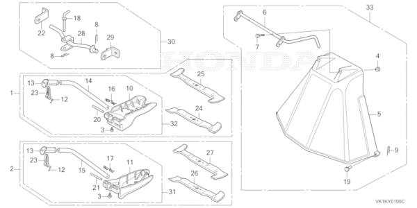 Grâce aux vues éclatées techniques officielles Honda, repérez visuellement chaque pièce à remplacer : lames (simple ou mulching), moteur, courroies, roues, filtres, capots, visserie… pour commander avec précision et confiance.